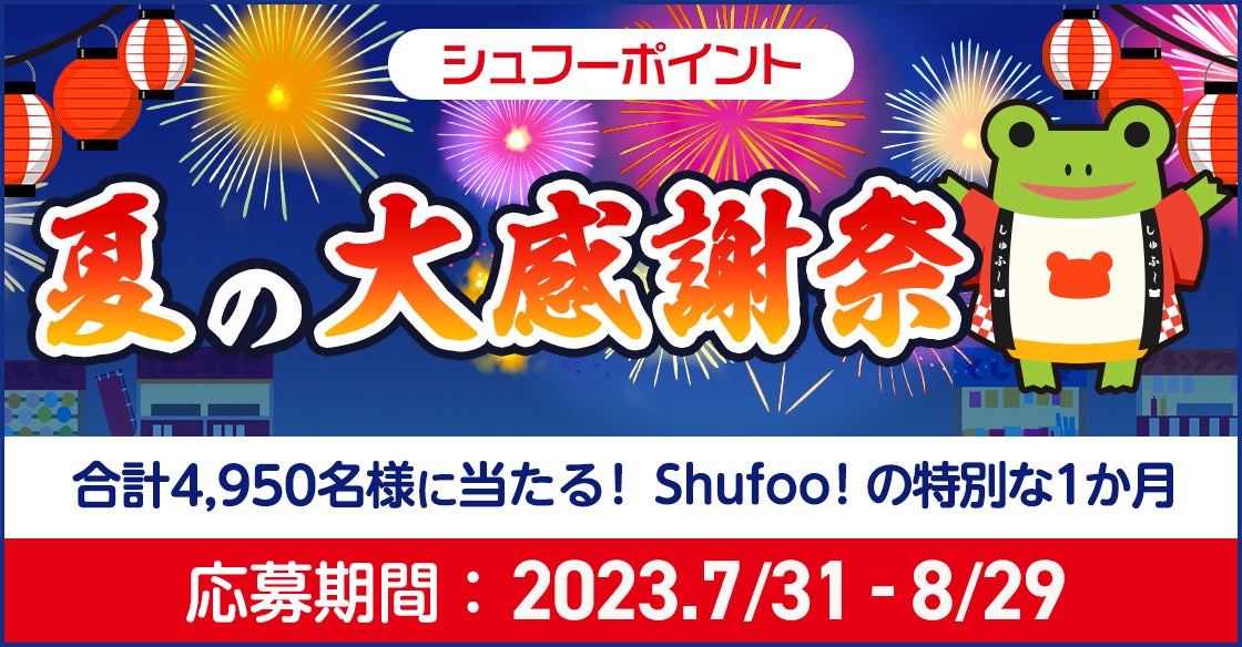 【 総勢4,950名に当たる!】Shufoo!史上最大級「夏の大感謝祭」キャンペーン開催!