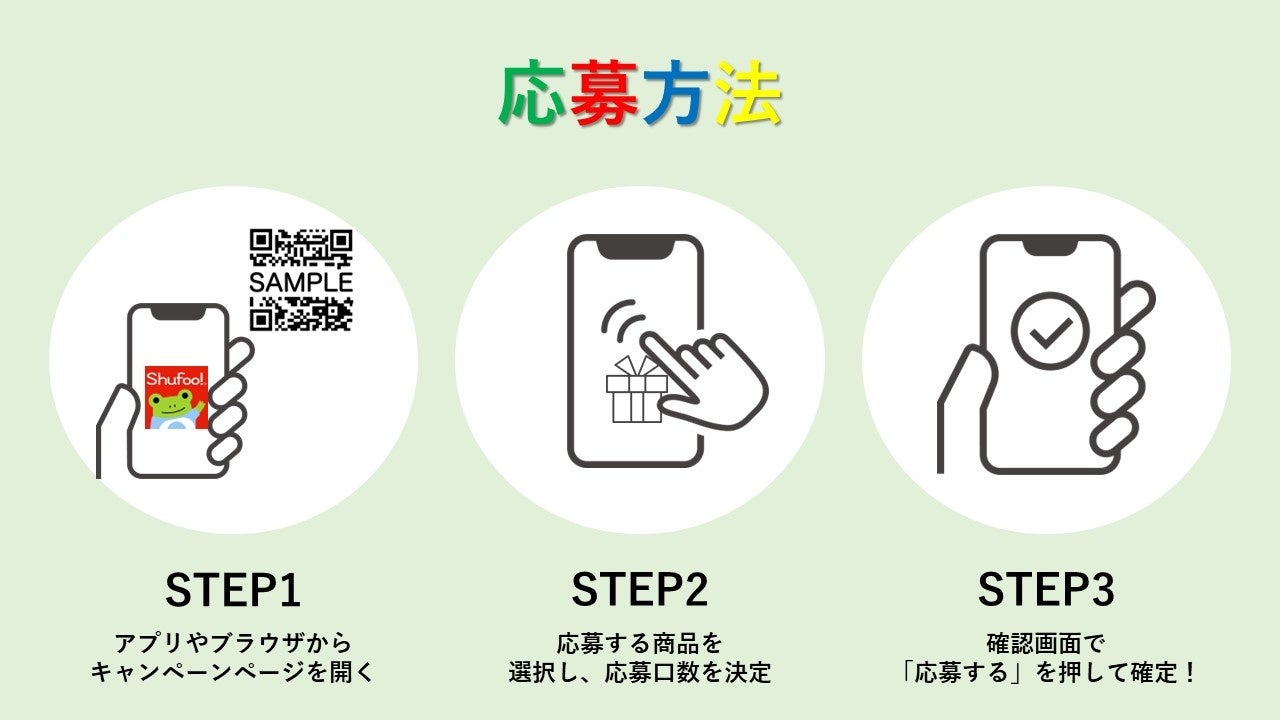 キャンペーン期間中、Shufoo!に掲載されているお店を訪れ、Shufoo!アプリから「ガラポン」をタップすると、賞品応募に必要なシュフーポイント10ポイント~500ポイントがハズレなしで当たります。