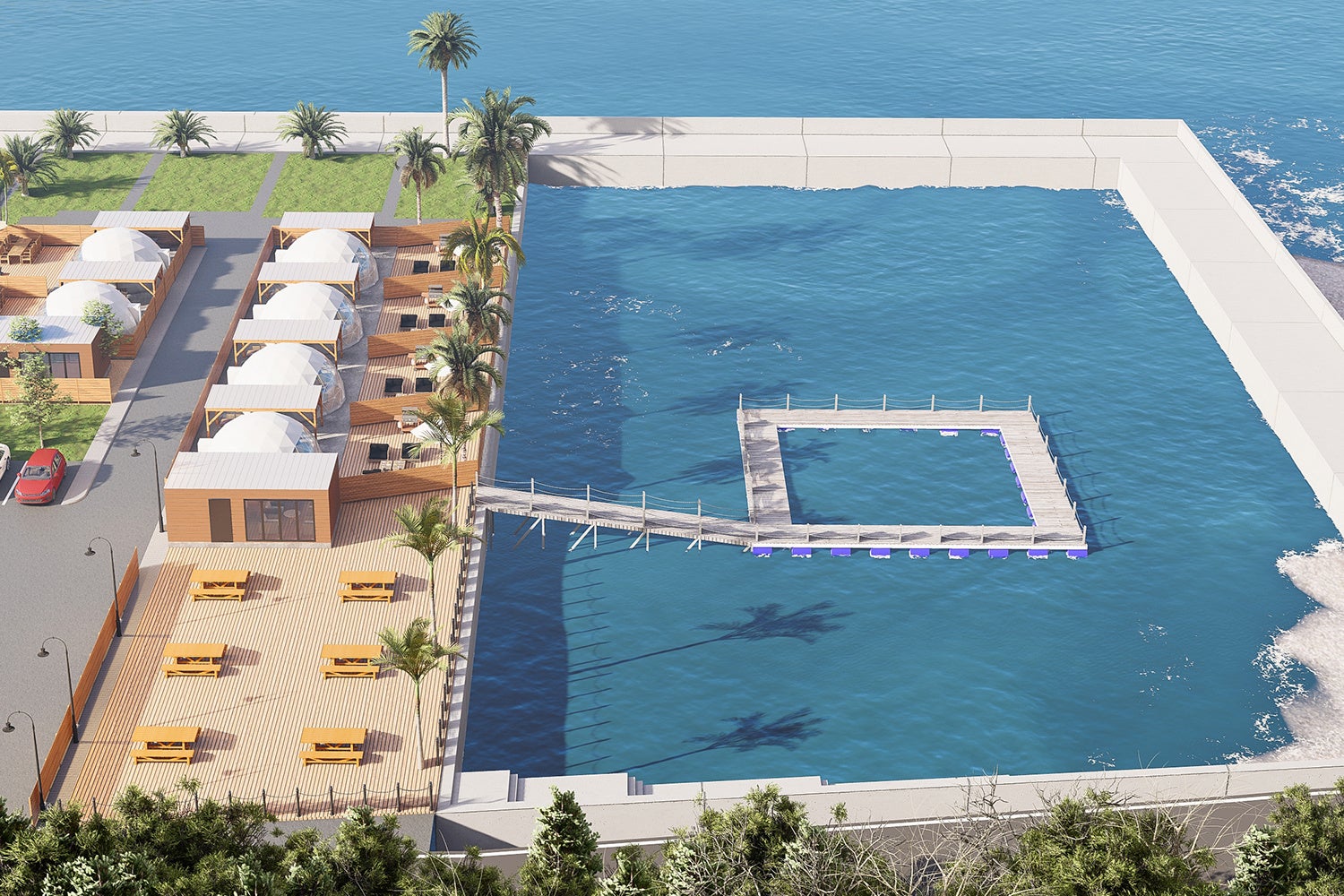 ①温暖な気候と青い海を満喫するグランピングリゾート