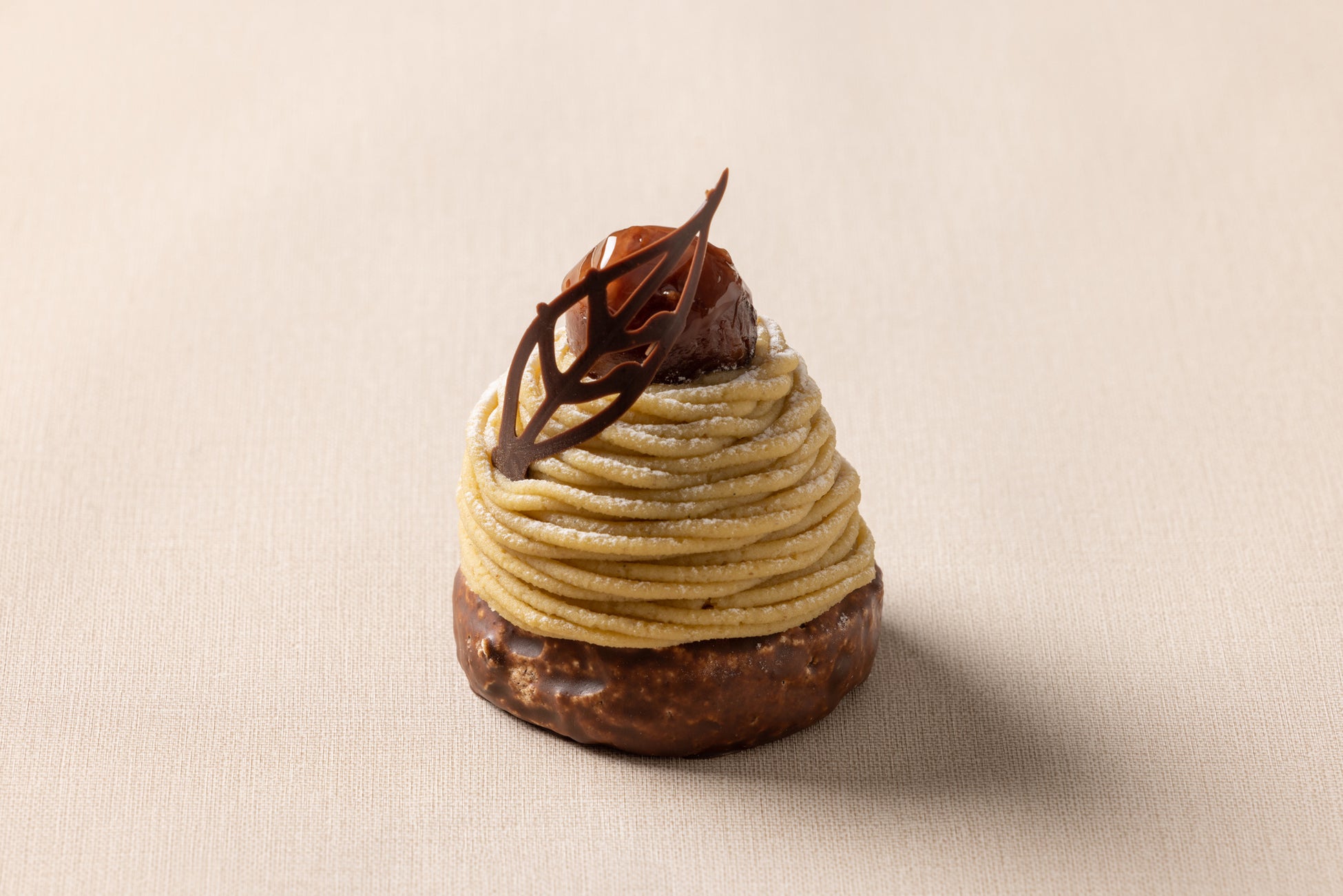 国産の生栗を炊いてつくる、上品ながらもどこか懐かしい甘さの特製マロンクリームで仕上げるモンブランです。チョコレートでコーティングした焼きメレンゲのサクサクとした食感と、栗本来の味が楽しめる馴染みのあるモンブランに仕上げます。