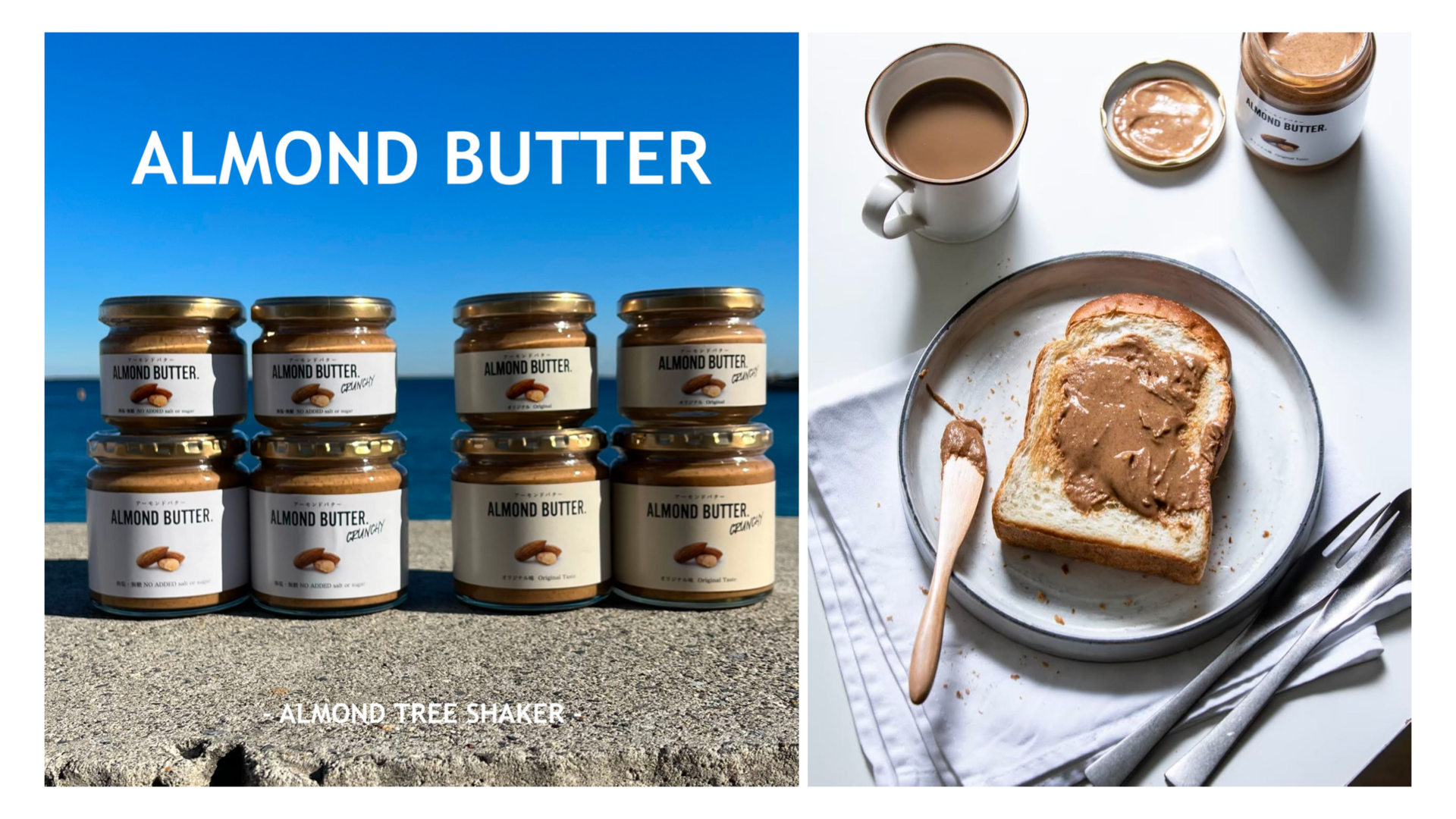 アーモンドバターの製造と販売を行なっています。特徴は、「アーモンドをそのまま食べている」と感じるくらい濃厚な口当たりです。トーストだけではなくヨーグルトやスムージー、さらにはオートミールなど朝食のお供として活躍する商品です。