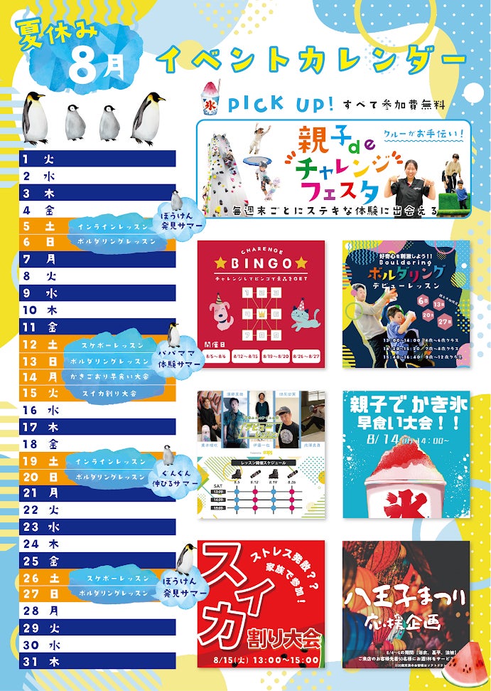 毎週末開催されていますので、気になるイベントをチェックして家族みんなでチャレンジしましょう!