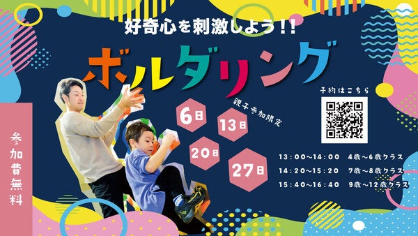 当店大人気のボルダリングに、プロ講師を招いて毎週日曜日の13:00~16:40の間で『ボルダリングレッスン』を開催します。年齢に合わせたレッスンを行いますので、レベルの心配はいりません。初心者向けのイベントなので、体験してみたい、スキルアップしたいと思う方にオススメです!!