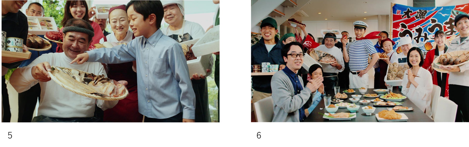 CM第2弾の「とつげき UMIUMA」篇では、戸塚純貴さんが演じる「うみうまキャプテン」が、マンネリ気味な食卓にとつげきして、職人が手間暇かけた海の幸を使ったメニューを提案。家族と一緒に食卓を囲み、「感謝!感激!うみうまし!!」で締めくくられます。
