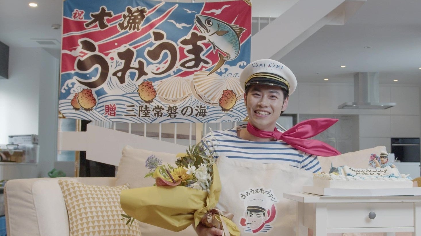 食卓にとつげきして三陸・常磐の海の幸を振る舞い「感謝!感激!うみうまし!!」我慢できずに思わずUMIUMAグルメを食べてしまう様子や最速誕生日サプライズの様子を収めたメイキング動画も同時公開!