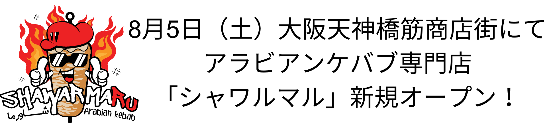 本場のアラビアンケバブを味わえる「シャワルマル」が8月5日(土)大阪天神橋筋商店街にオープン!
