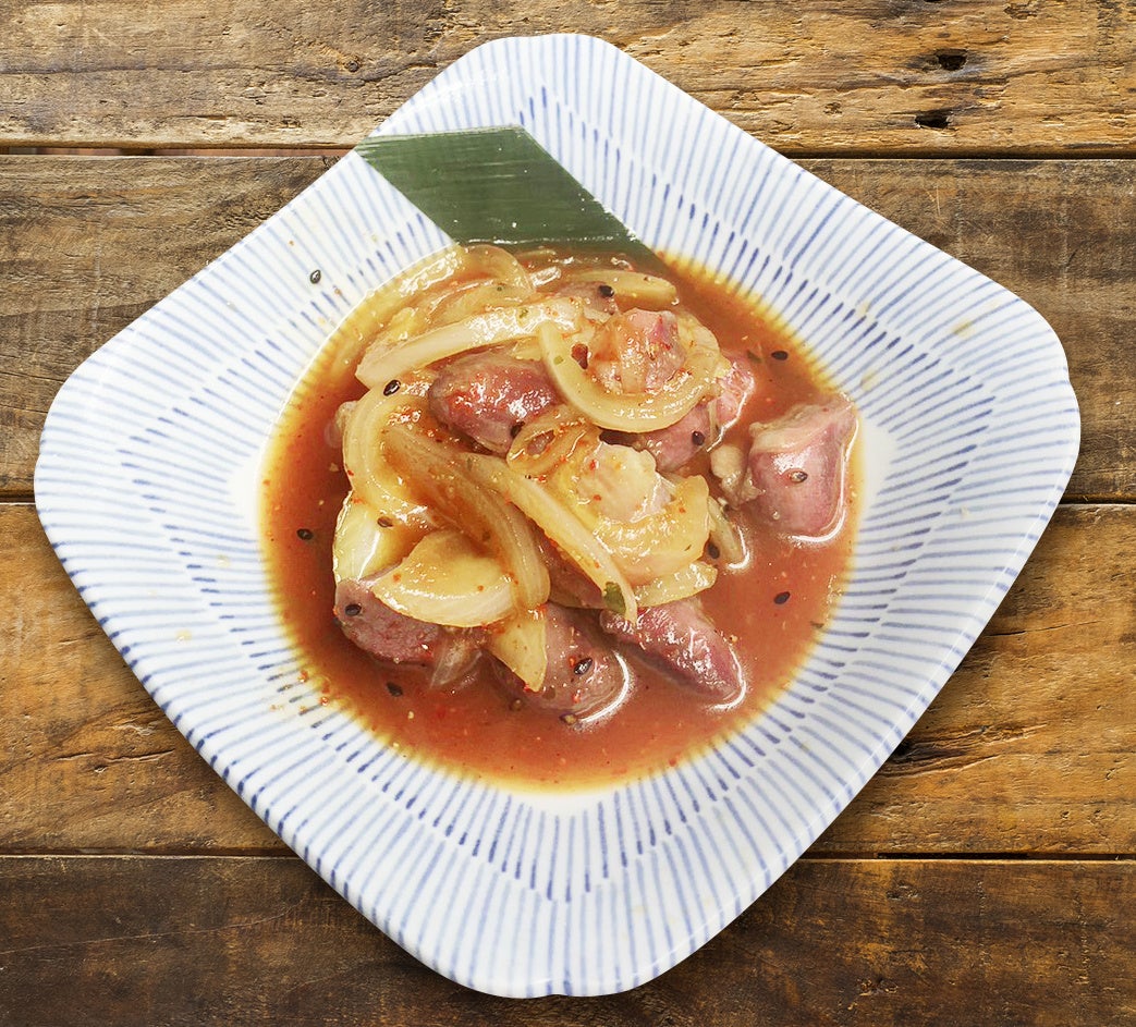 砂肝の食感と旨辛スパイスがマッチした逸品です。