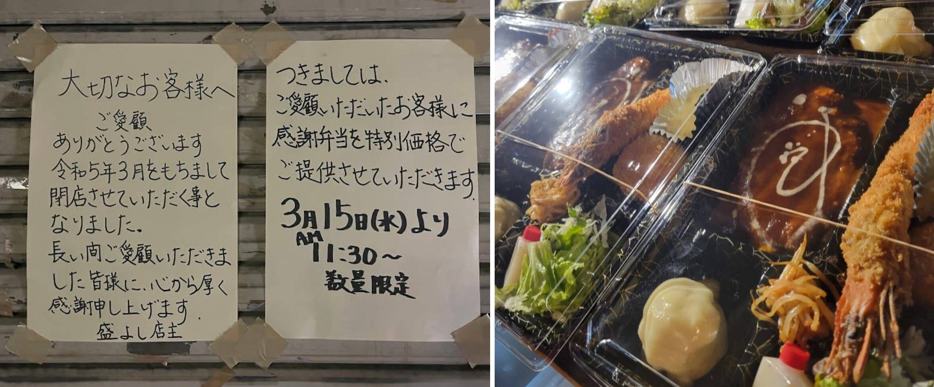 - 今年2023年3月、惜しまれつつの閉店。そして感謝弁当を販売