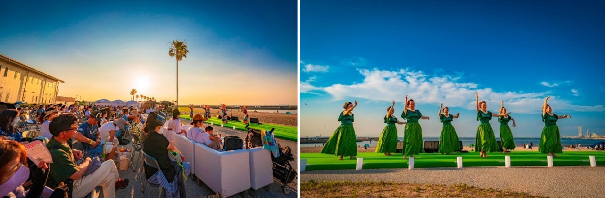 WORLD BEACH EXPOでは、世界各国のビーチリゾート(アメリカ、イタリア、フィリピン、ブラジル、タイ)をステージパフォーマンス、グルメ、マーケット、ワークショップなどを通じて疑似体験できます。会場のSENNNAN LONG PARKは、目の前に海が広がる絶好のロケーションで、遠く離れたビーチリゾートの魅力を存分に味わう贅沢なひとときをお過ごしください。