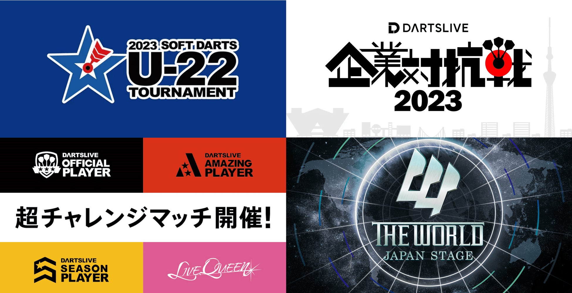 「日本ダーツ祭り2023」では、今年もさまざまなダーツトーナメントが開催されます。一般来場者によるトーナメントの他にも、22歳以下のダーツプレイヤーが優勝の座をかけて戦う「2023 SOFT DARTS U-22 TOURNAMENT」と、企業と企業がダーツで対決する「ダーツライブ企業対抗戦 2023」が共に4年振りの復活となるほか、国内外で活躍するトップ選手たちとの交流が楽しめる「超チャレンジマッチ」、世界最高峰のソフトダーツトーナメント「THE WORLD」のJAPAN STAGEを予定しています。