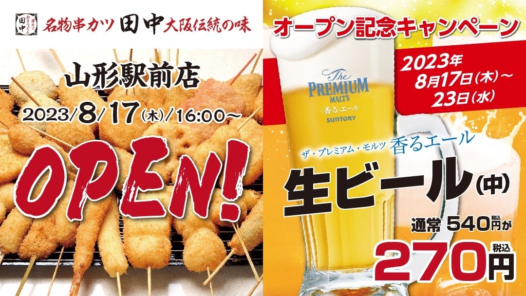 山形県初出店!『串カツ田中 山形駅前店』が8月17日(木)にオープン!