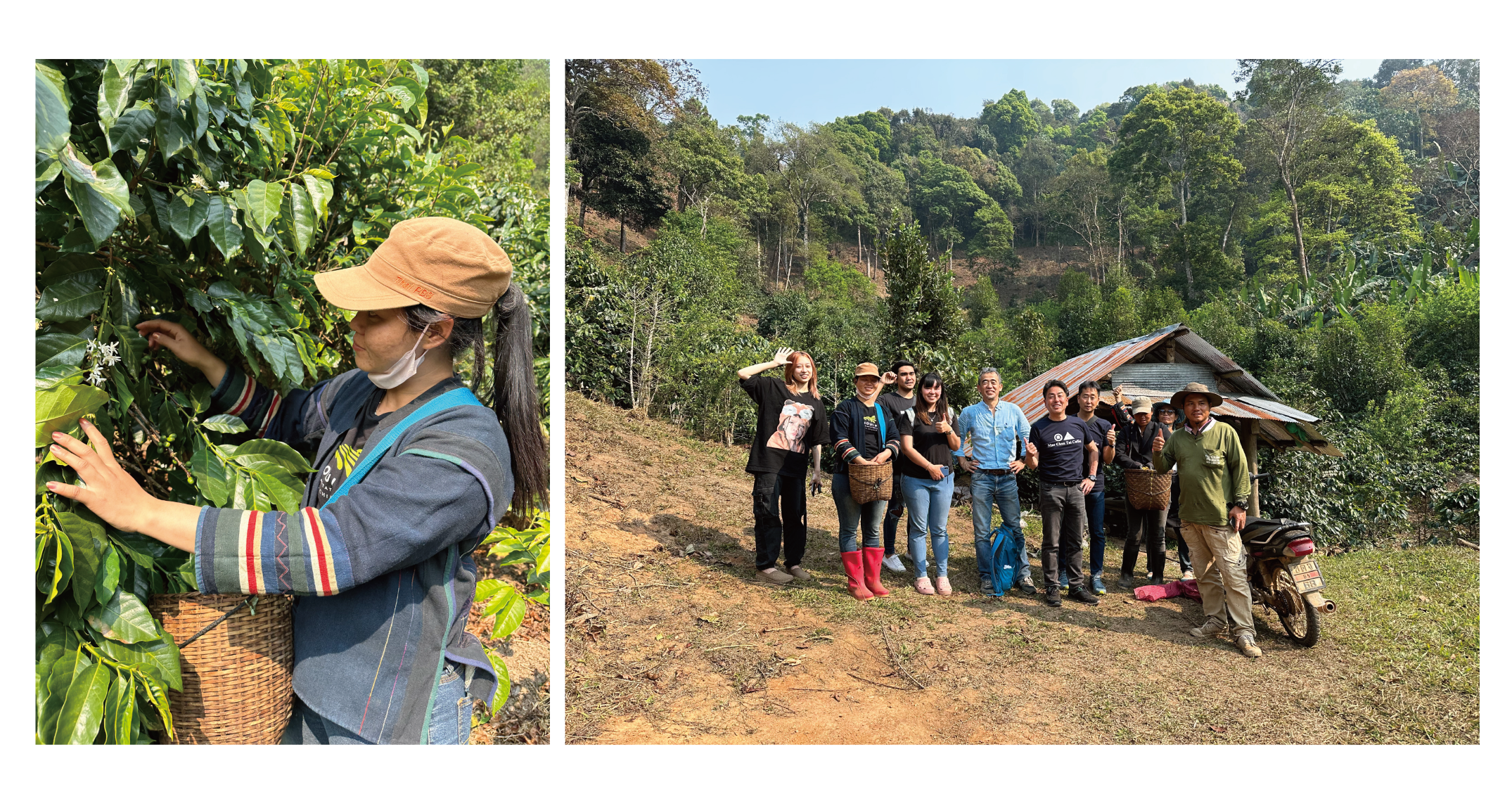 下町・足立区に根差し、1969年の創業以来紙加工業を営んできた三洋紙業が、東京・原宿で拘りのコーヒーショップをオープンすることになったのは、ある出会いがきっかけ。2022年4月、三洋紙業が東南アジアに拠点を持っている縁で、標高1400メートルの山奥でアラビカコーヒーを生産する「アカ族の村」を初めて訪問しました。タイ北部チェンライ県に位置するメーチャンタイ村。そこでは少数山岳民族のアカ族がコーヒーを中心とした作物を栽培していました。アカ族は東南アジアの中でも最もインフラ整備に遅れ、貧困人口が多いとされる山岳民族の一つ。日本のNPO団体が村の自立支援をしており(アジア自立支援機構 小沼廣幸氏)、タイ国内外での「メ―チャンタイ村コーヒー豆」のブランド力向上を模索していました。同時に、三洋紙業は積み上げてきた事業の経験を、グローバルな共通課題であるSDGs達成への国際的社会貢献に活かす方策を探していました。ここから紙製パッケージや販促物の開発経験を持つ三洋紙業で、コーヒー事業展開の構想が始まりました。