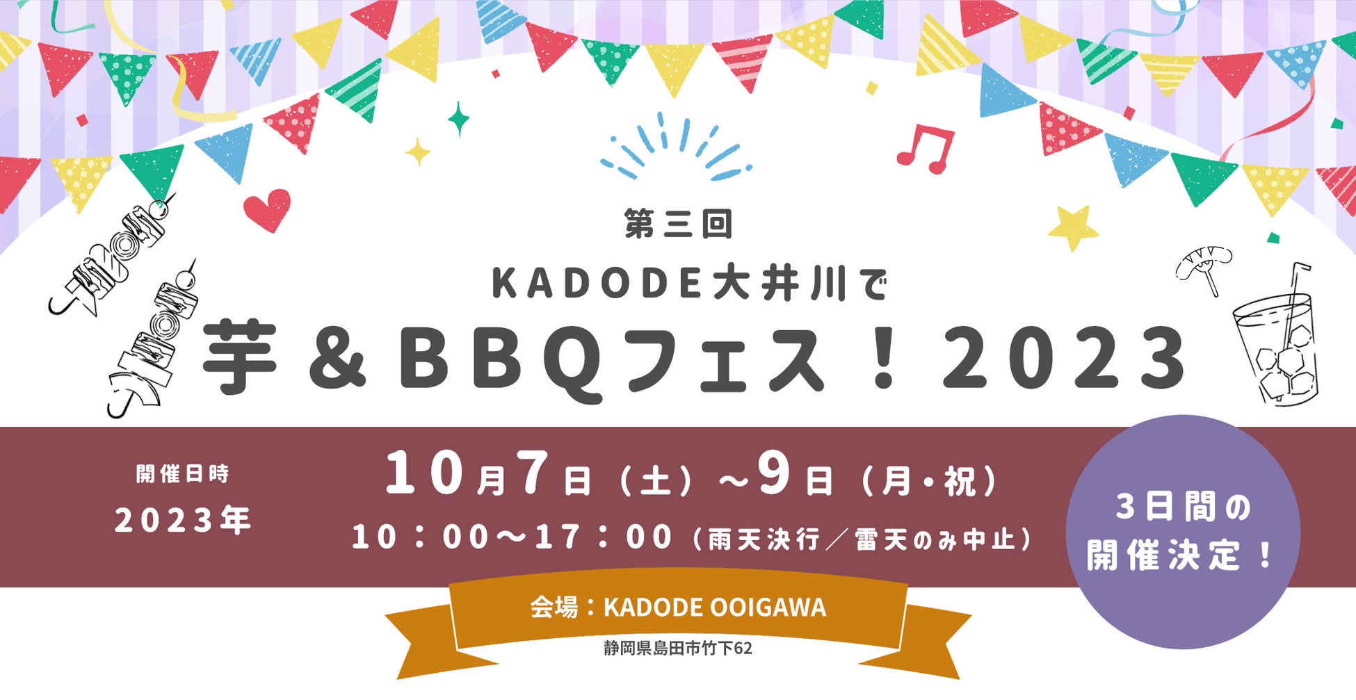 2023年10月7日-9日 島田市「kadode大井川」で芋&BBQフェス!を開催!出店者エントリー開始!
