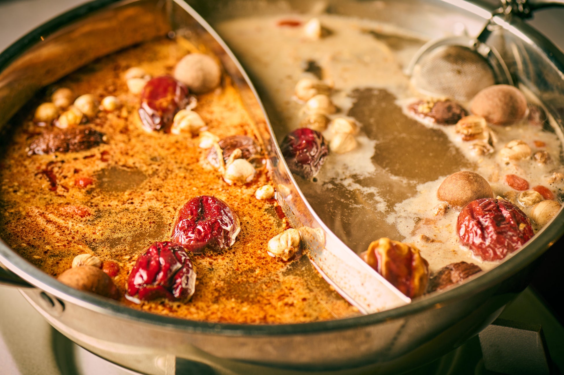 30種類以上の薬膳スパイスがブレンドされた麻辣湯のスープをベースにアレンジを加えた6種の火鍋スープをご用意しました。個性豊かなスープの中から2種類をお選びいただき、たっぷりの野菜と共にお召し上がりください。