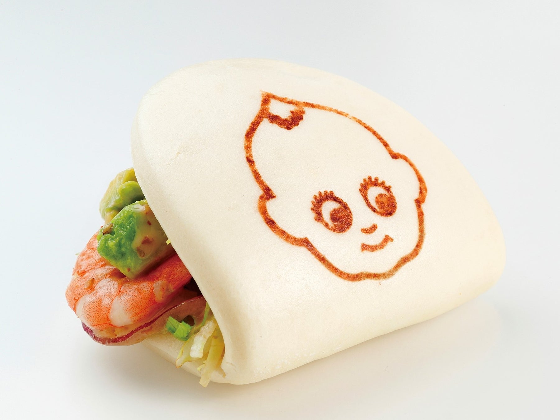 サラダで定番のエビとアボカドを、コリアンダーをきかせた深煎りごまドレッシングであえ、バンズにたっぷりと挟みました。スパイシーで爽やかな味わいのキユーピーまんです。