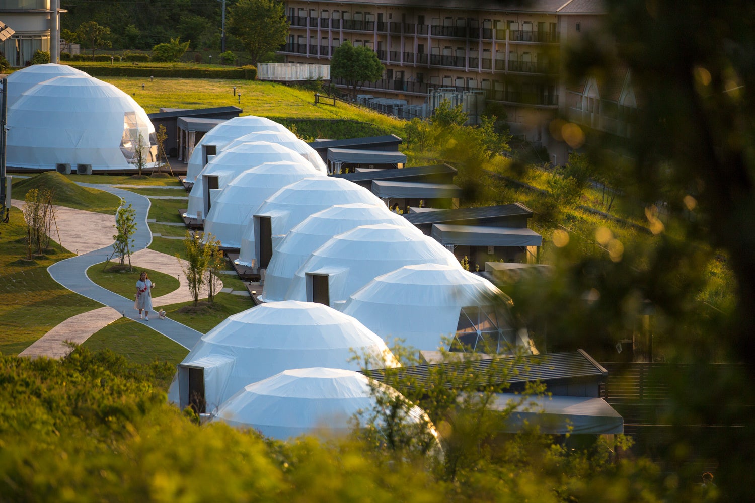 大阪府初の仕様となる繭型のコクーンテントを4棟配置。