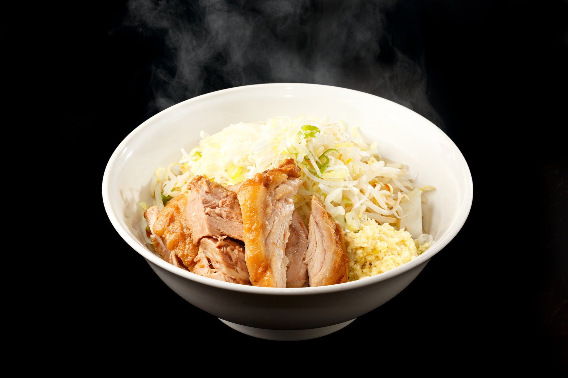 千葉・市原にて日々行列を成す名店「ちばから」の油そば(節)は、常連の間で大人気の商品。濃厚なタレにかつお節がしっかりと香り、「ちばから」といえばのド乳化スープ、大きな豚との相性も抜群。そこに肉カス脂を加えてジャンクを極めた究極のG系油そば。