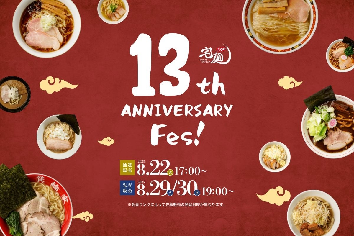 現在公開されている参加ラーメン店のうち、「ちばから」を除く9店舗が「宅麺13周年祭」をきっかけに新たにパートナー店舗となりました。日本一の煮干しラーメンとも称される「煮干中華ソバ イチカワ」や、近年トレンドの超極太手打ち麺「日陰」、埼玉県の東岩槻で連日大行列を作っている「オランダ軒」など、業界でも超が付くほどの有名店が集まり、13周年を盛り上げてくれます。今回用意した商品はすべて新商品で、中にはラーメンの冷凍販売自体が初めてというお店もあります。全ての参加ラーメン店と販売商品については、「販売商品詳細」からご確認いただけます。普段は行列に並ばなければ食べられない名店の味を、この機会にぜひお楽しみください。