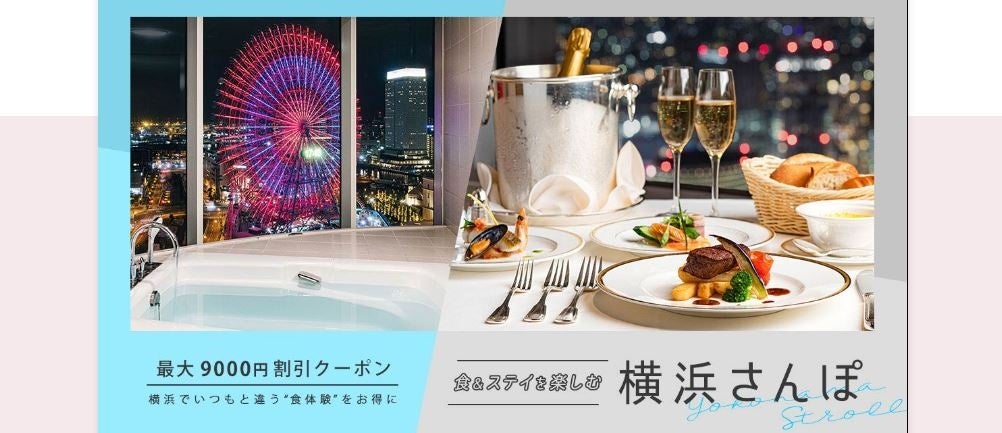 スターツ出版株式会社(本社:東京都中央区、代表取締役社長:菊地修一)が運営する会員400万人の女性サイト「OZmall(オズモール)」 https://www.ozmall.co.jp/ のホテル予約では、 2023/8/31(木)~2024/2/29(木)の期間中、公益財団法人横浜観光コンベンション・ビューローが実施する来訪促進プロモーション事業の一環として、いつもと違う横浜の“食体験”ができるディナー&朝食付き宿泊プランを発売。合わせて最大9000円OFFの割引クーポンをご用意します。