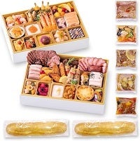 普段あまり食べることのないメニューや、ちょっと珍しいオリジナルメニューも多く盛り込んだ、ワインによく合う「ビストロおせち」です。 「チキンステーキ バーベキューソース」と、野菜を入れて煮込むだけで洋風雑煮が簡単に作れる「濃縮トマトスープ」をプレゼントとしてお召し上がりいただけます。盛り付け直後に急速冷凍し、作りたての美味しさをお届けします。