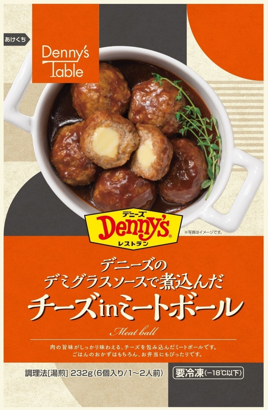 また、冷凍シリーズの「デニーズのデミグラスソースで煮込んだ チーズinミートボール」は、長年、美味しさを磨き続けたデニーズのハンバーグのノウハウを活かしつつ、小分けができて、夕食やお弁当のおかずになる「ミートボール」に仕立てました。中に入っている大きめなチーズは、1つ1つ手包みだからできることです。デミグラスソースは、デニーズメニューで使用しているもので、ミートボールと一緒に煮込むことで、より旨みと深みのある仕上がりになりました。