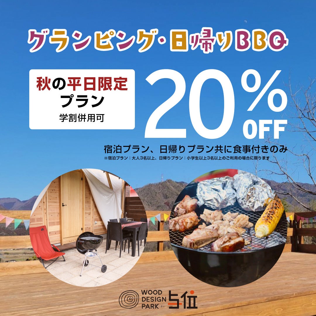 兵庫【ウッドデザインパーク与位】2023年OPENグランピング施設 秋のお得な宿泊プランや日帰りプランが充実!