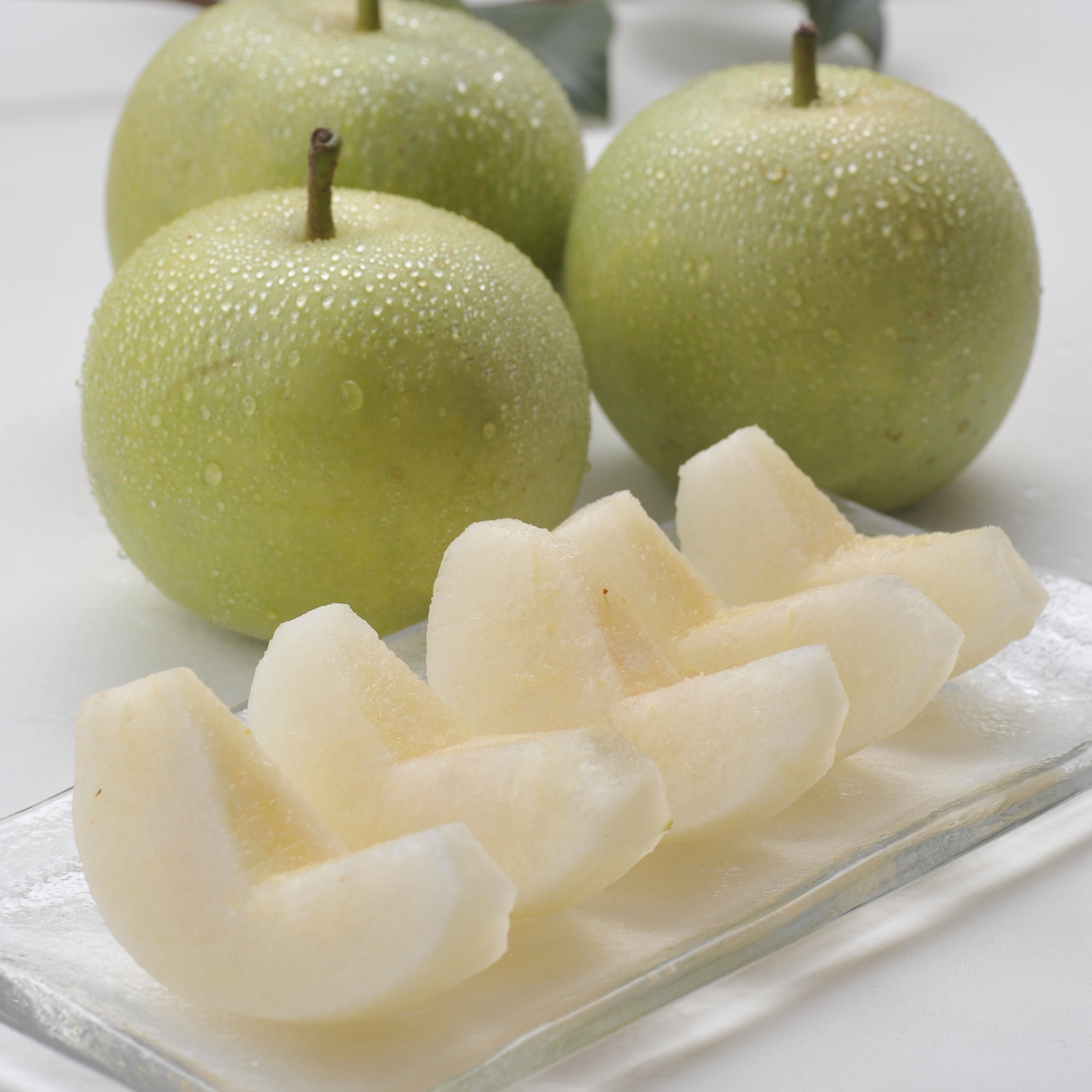 甘くてみずみずしい「新甘泉」とシャリシャリ食感が自慢の「20世紀梨」を食べ比べ。