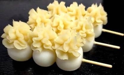 鳥取県〈美保ノ喜久蔵商店〉のお団子 。梨のあんこがのっています。