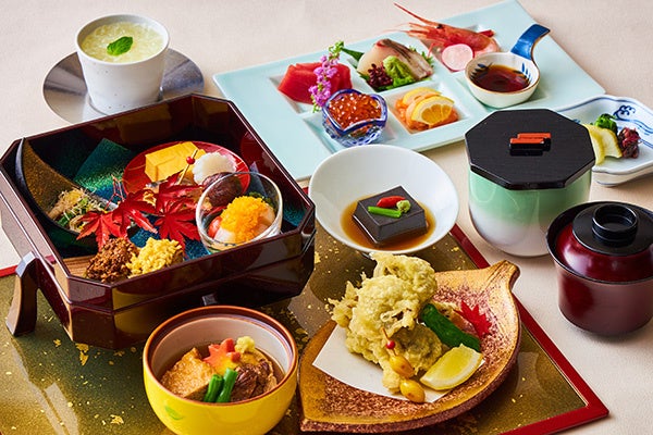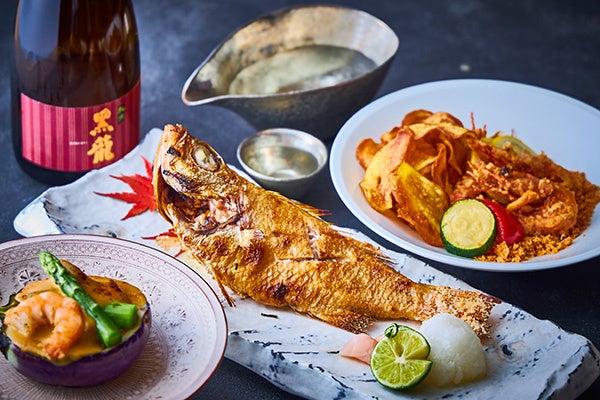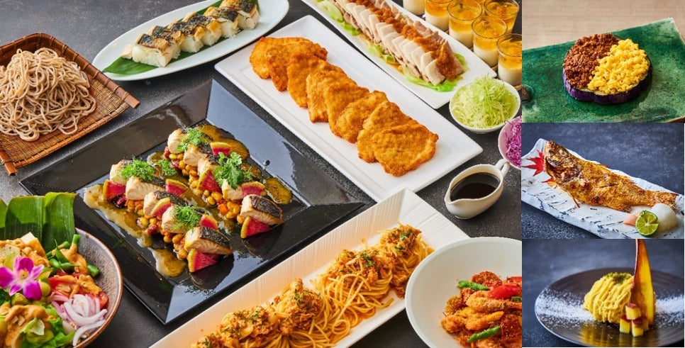 福井県の名物のひとつ「焼き鯖寿司」は、うまみたっぷりの肉厚な鯖がのった贅沢なお寿司です。中に挟んだ生姜、大葉が口の中をサッパリとさせ、ついつい箸が止まらなくなる一品です。秋に旬を迎える福井県産の鰆を使った「福井県産鰆のプランチャ ブールブランとカロチーノオイルのエマルジョン」は、鉄板焼きにしたほどよい脂身と上品な味わいの鰆に、まろやかな味わいのバターソースとクセのないサラッとしたアンチエイジング オイルを混ぜたソースをあわせてお召し上がりください。殻ごと食べられる甘えびを揚げ、ココナッツ・唐辛子・ ガーリック・パン粉などで作ったスパイシーなパウダーをまとった「もちえび(福井県産脱皮甘えび) スパイシー揚げ」は、越前の甘えびを丸ごとお楽しみいただけます。その他にも、日本料理・西洋料理・中国料理・スイーツの各専門シェフの珠玉の料理の数々を余すことなくご堪能ください。