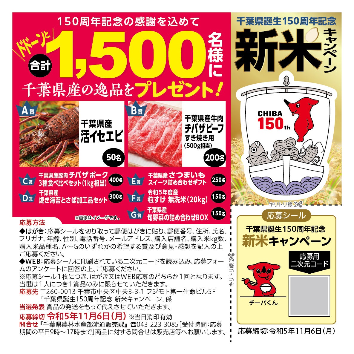 今年で誕生150周年を迎える千葉県を記念する本キャンペーン。今後もより一層、安全、安心なおいしいお米をいち早く皆様へお届けできるよう努めてまいります。