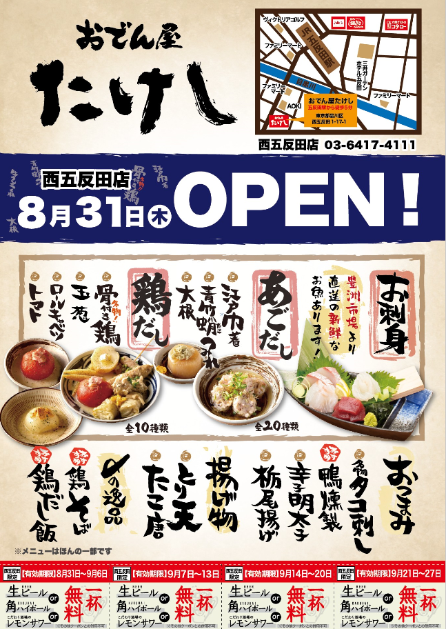 西五反田チラシイメージ ※店舗周辺にて配布予定
