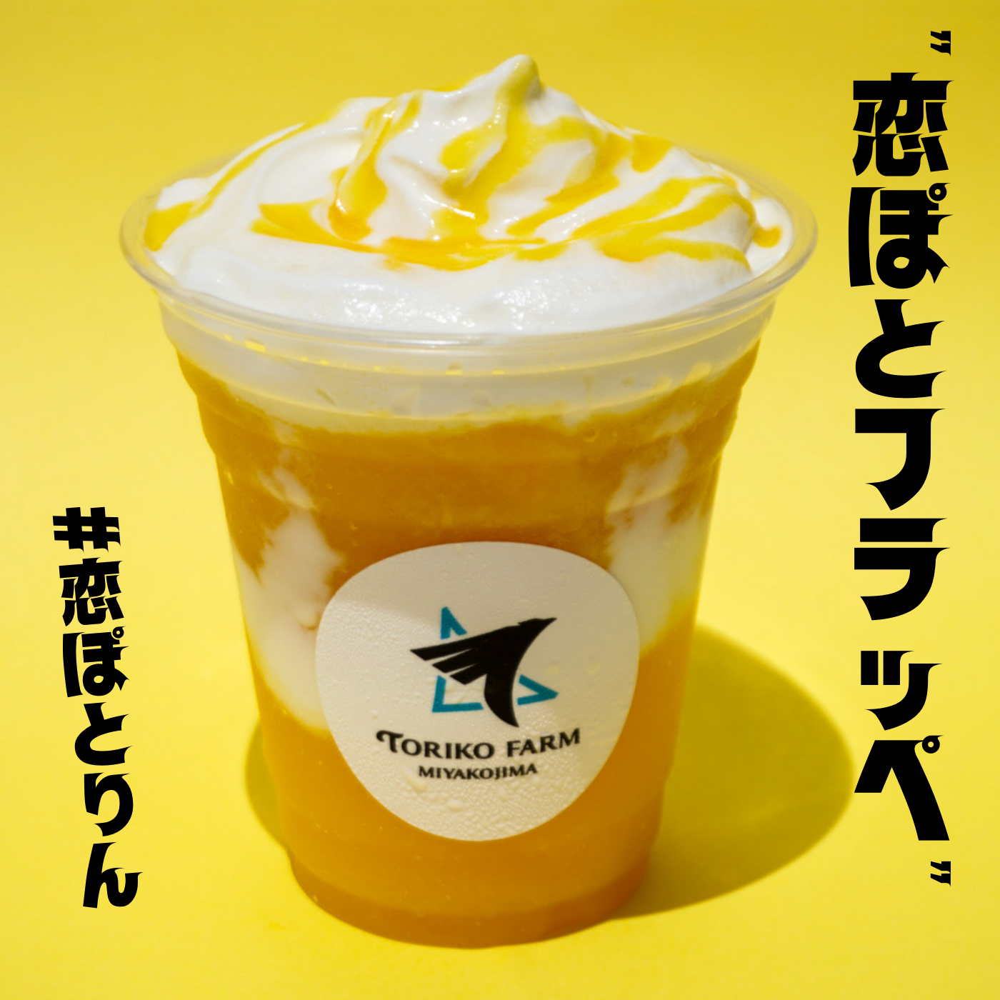 2:恋ぽとフラッペ・・・弊社ブランドの恋ぽとりん(マンゴー)×ヨーグルトの組み合わせにより、灼熱の暑さを吹き飛ばすほどのスッキリとした味わいです。