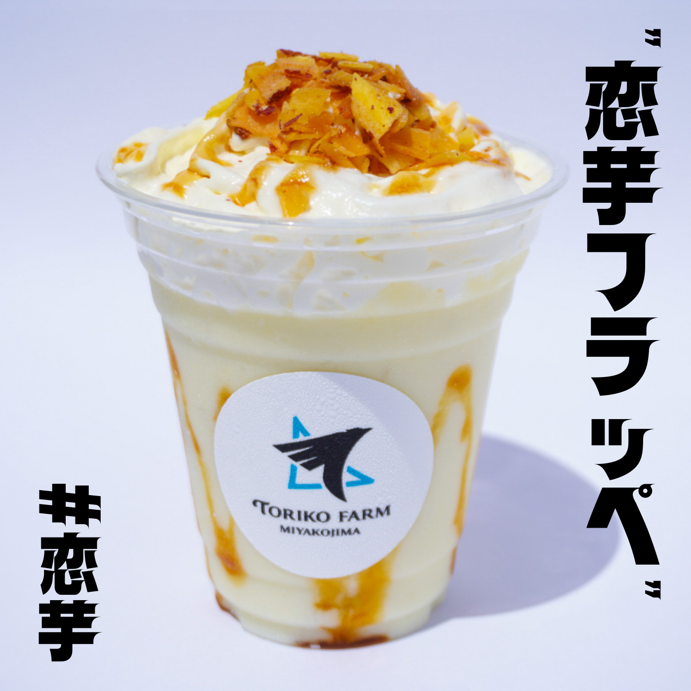 3:恋芋フラッペ・・・自社の畑で収穫したさつまいも(紅はるか)を貯蔵し、それを焼き芋に変化させ素材の味を活かしながらも甘すぎず飲みやすい味わいです。