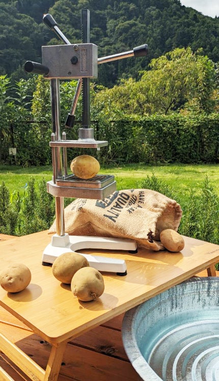 また、サイドメニューのじゃがいもから作る「ポテトフライ」は、群馬県産ジャガイモをポテトカッターでお客様自身でカットしていただき、店舗スタッフが“サックサック”の揚げたてをテーブルまでお持ちします!