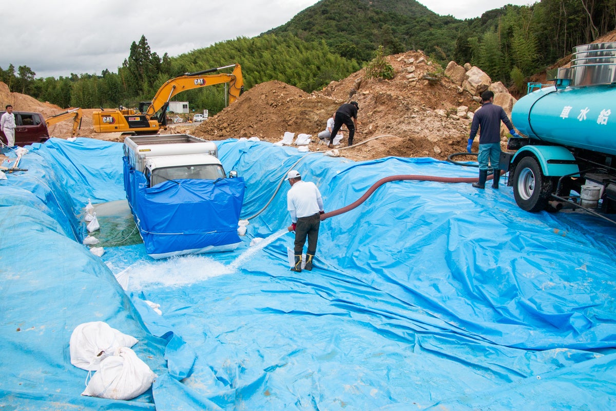 ゲリラ豪雨や大雨などを原因とした浸水被害から、資産と事業(BCP)を守る!イノベックス「日本!安全宣言!®」シリーズ車両浸水防止カバー「ウォーターセーフ」
