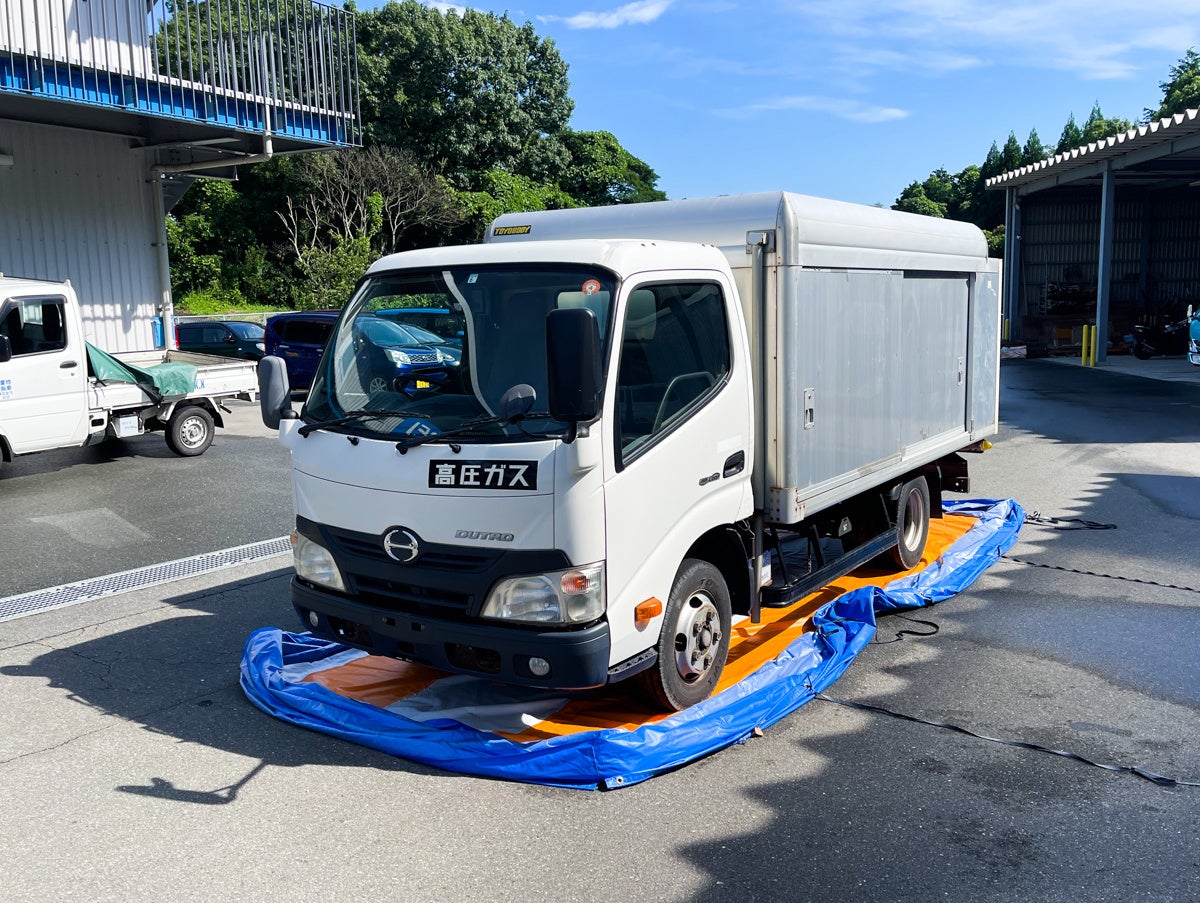 「ウォーターセーフ」を取り付けた2トントラックを水深約1.5mの水に沈め、48時間水没実験を実施しました。