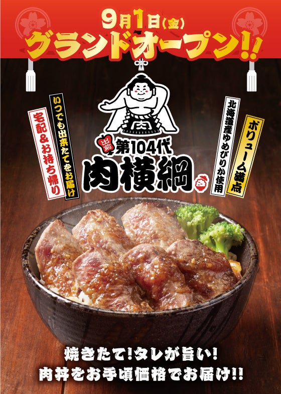 【宅配ピザテンフォーの新業態】宅配専門の肉丼店「第104代肉横綱」函館市内4店舗でグランドオープン!!