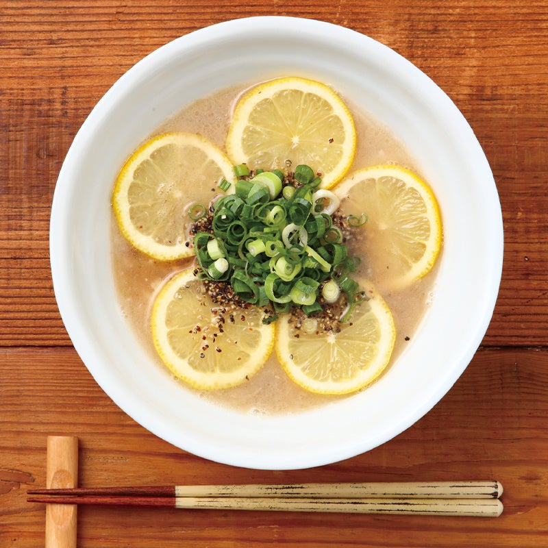 「濃厚な豚骨に、レモンの香りと酸味が調和」