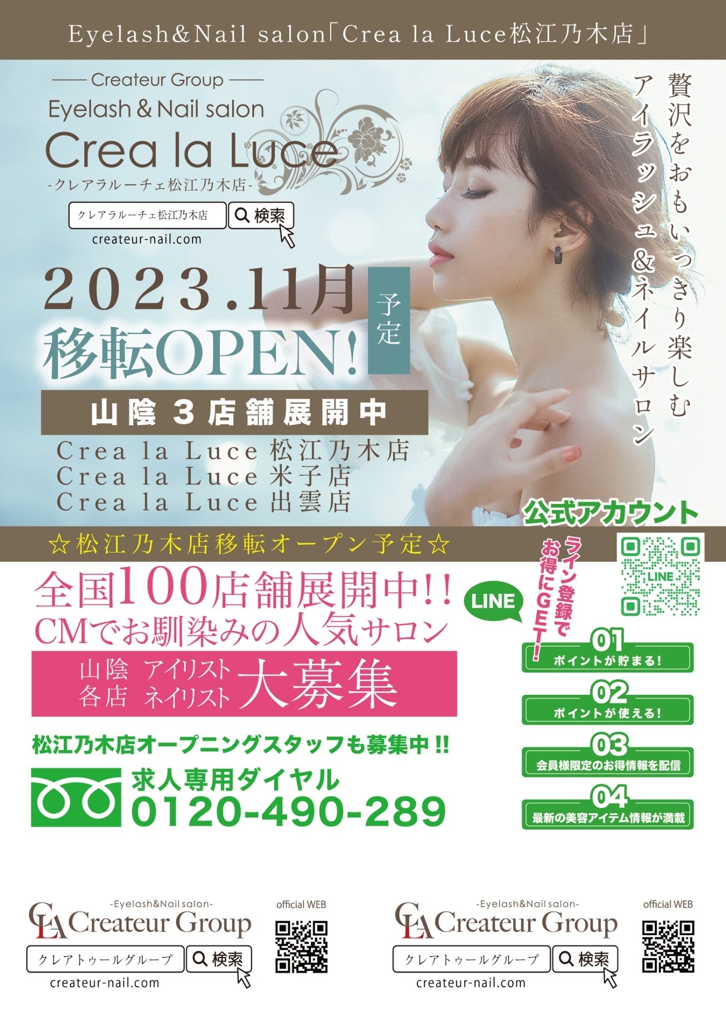 また11月にはアイラッシュ&ネイルサロンのクレアラルーチェ松江乃木店がいつでもスイーツと併設してオープン致します!