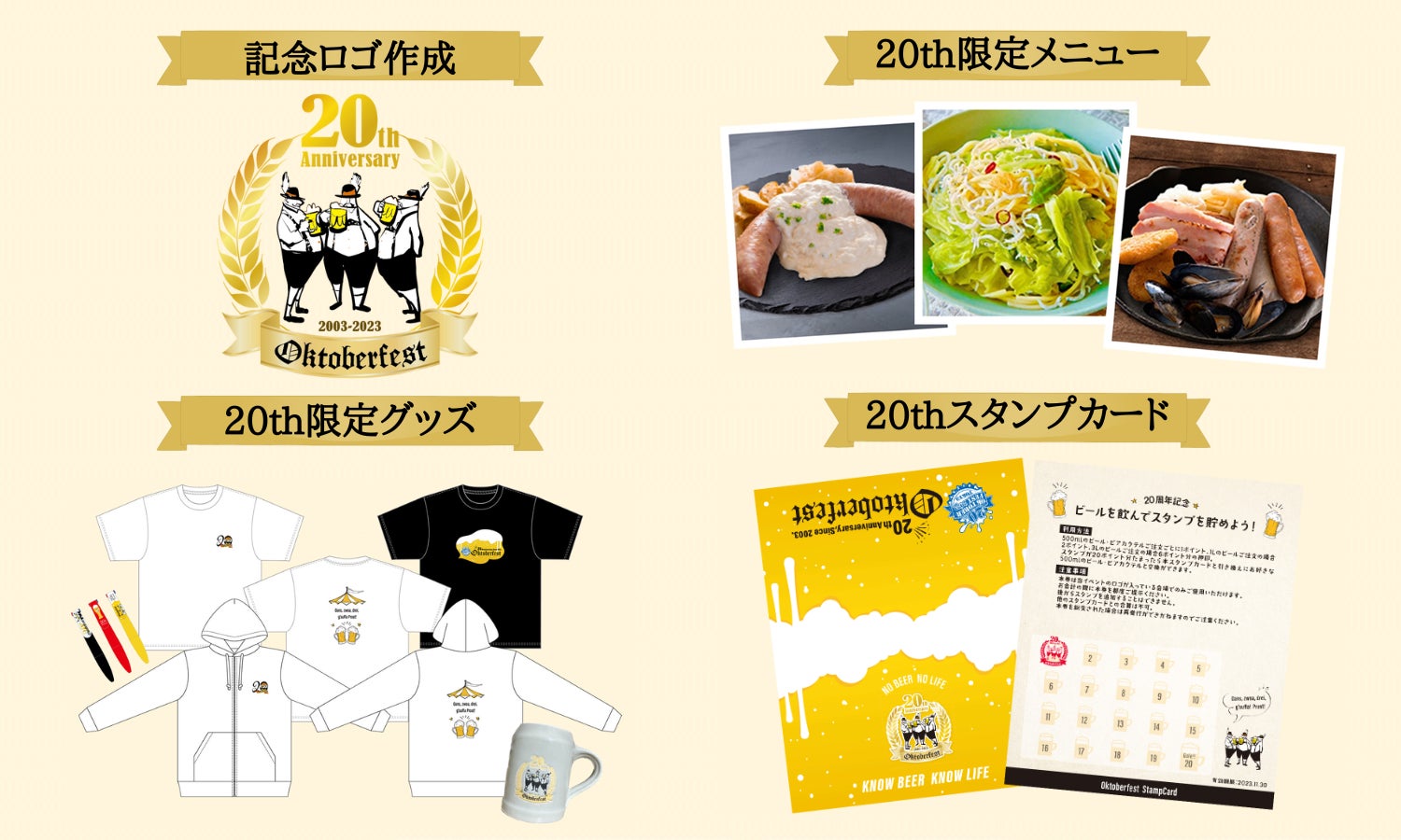- 20周年限定メニューの販売オクトーバーフェストの定番メニューをふんだんに盛り込んだ20周年限定プレートや限定のヤードグラスでのビール提供など様々な限定グルメが登場します。