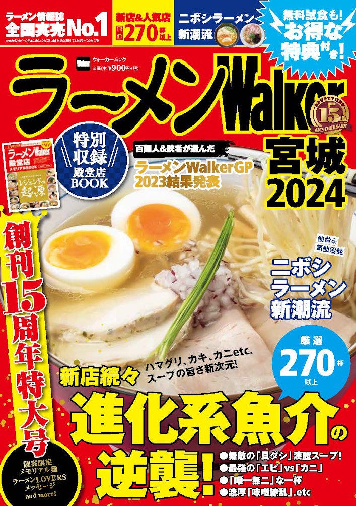 創刊15周年!『ラーメンWalker2024』第2弾として関西版、宮城版、福島版を発売!