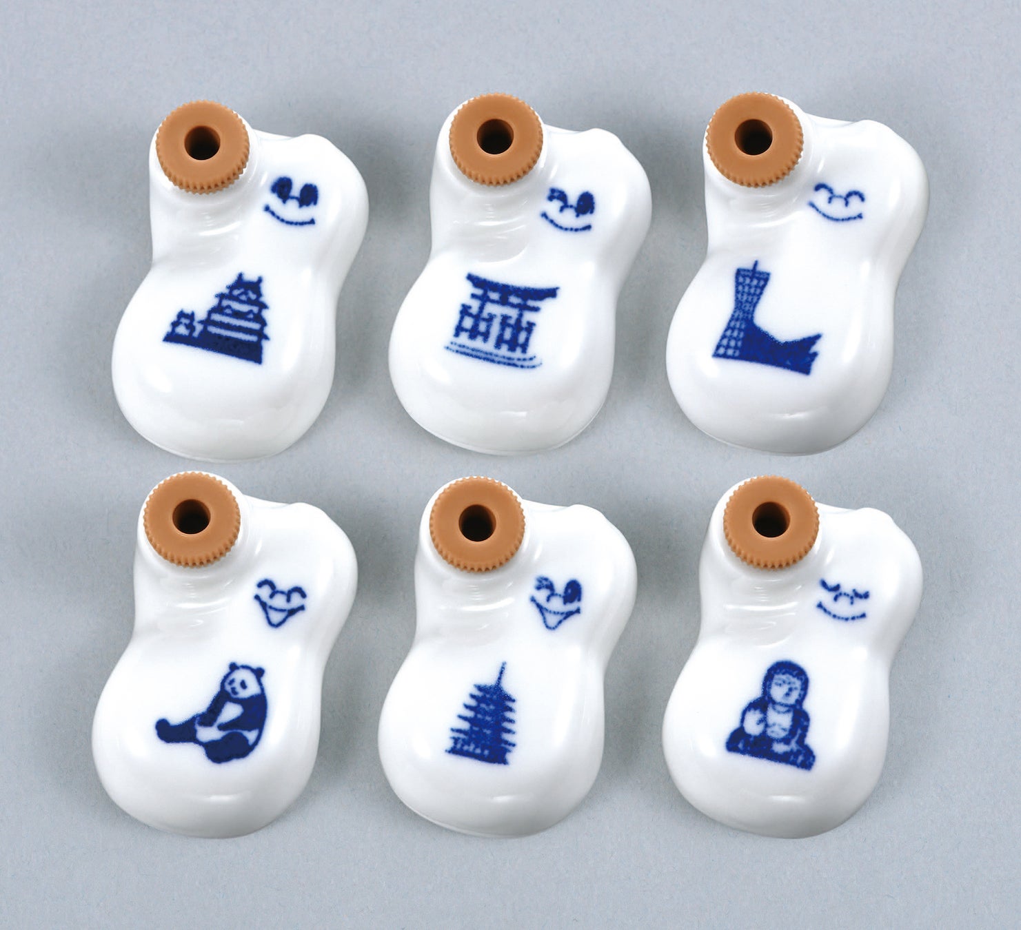 そして今回、関西の名所をデザインした『関西限定しょう油入れのひょうちゃん』が満を持して登場します。姫路城(兵庫県)、神戸ポートタワー(兵庫県)、白髭神社(滋賀県)、パンダ(和歌山県)、五重塔(京都府)、大仏(奈良県)をデザインした6種類が関西シウマイ15個入へランダムに封入されます。