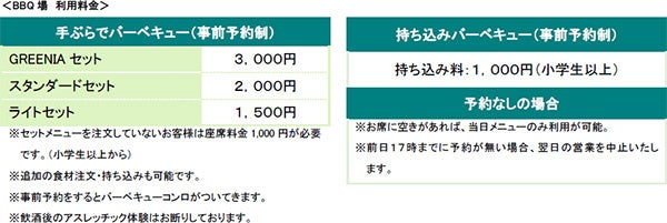 さらに、グリーニアはBBQ場を併設しているため、体を動かしてお腹が空いたらアウトドアクッキングもお楽しみいただけます。