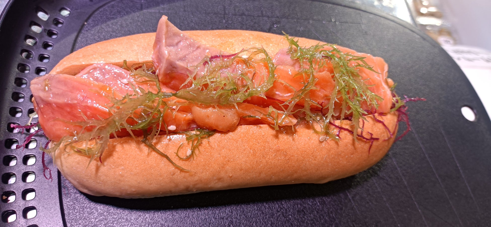 その名の通り、玄界灘で育てられたサーモンを使用し、博多長浜市場で人気の「玄海サーモンドッグ」。パンとのマリアージュが、これまでにないおさかなの魅力を引き出しています!おさかなが苦手な大人にこそお試しいただきたい一品です。