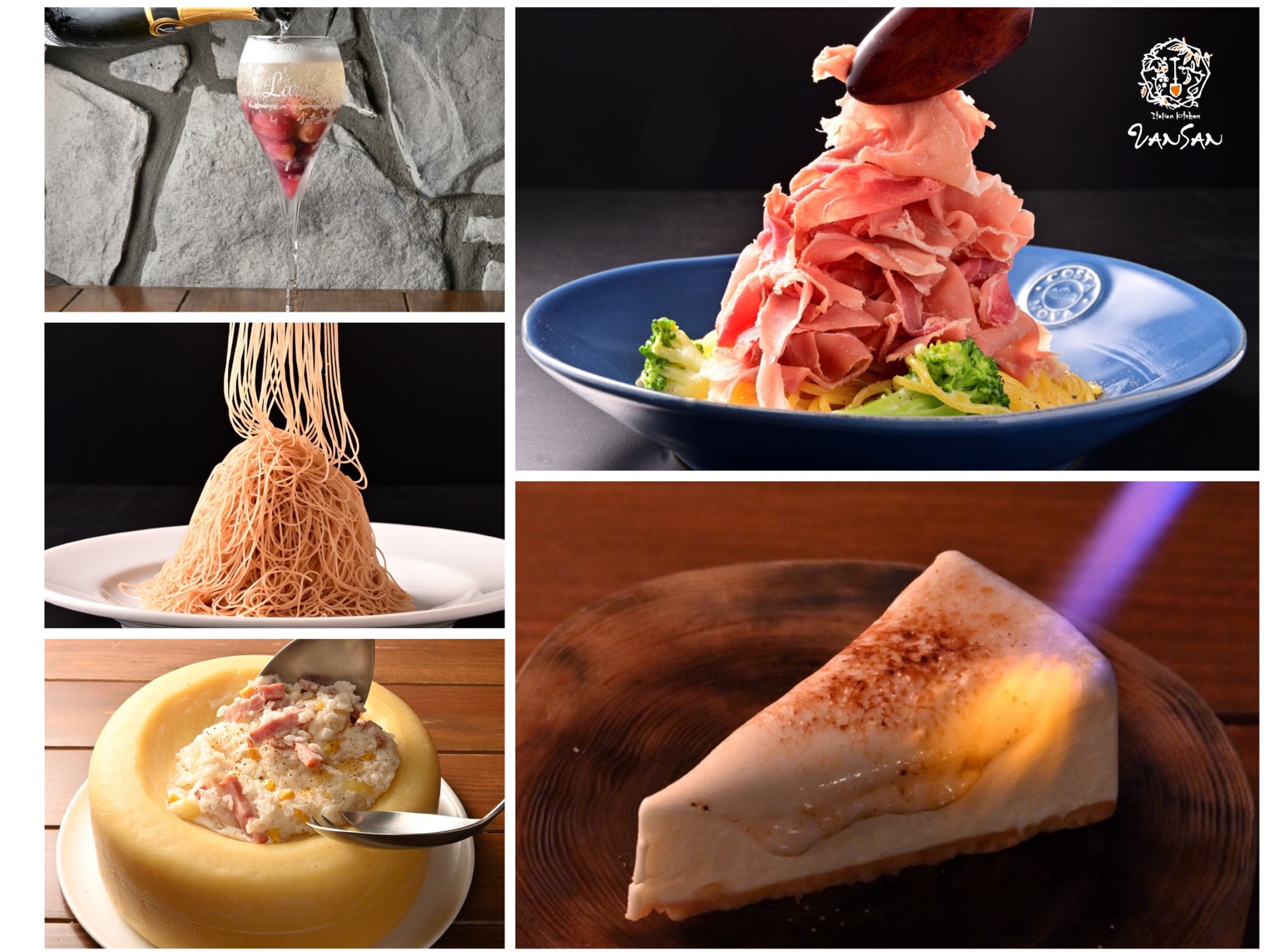 「ストップ!」と言うまでのせ続けるVANSANの看板メニュー“のせ放題パスタ”を筆頭に、「のせる・絡める・炙る・搾る」など思わず写真や動画に収めたくなるようなエンターテイメント性に富んだメニューを取り揃えておりますので、ご家族やご友人同士での食事の時間がより一層楽しいものに。
