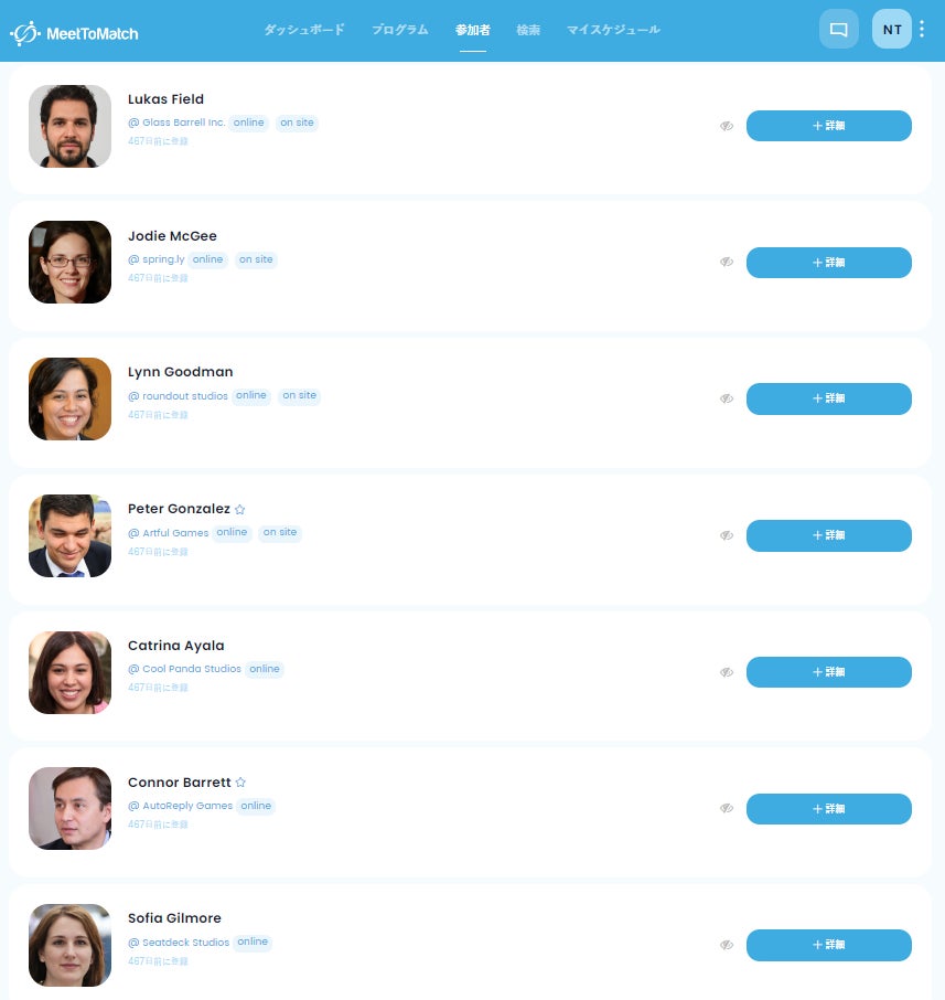 「MeetToMatch – 東京版2023」 は、東京ゲームショウの参加者と、それ以外の参加者との商談を可能にすることを目的としています。東京ゲームショウのビジネスパスをお持ちの方は、現地でビジネスパートナーとなる可能性のある方とお会いすることを強くお勧めいたしますが、当プラットフォームで参加者とオンラインミーティングを設定することも可能です。