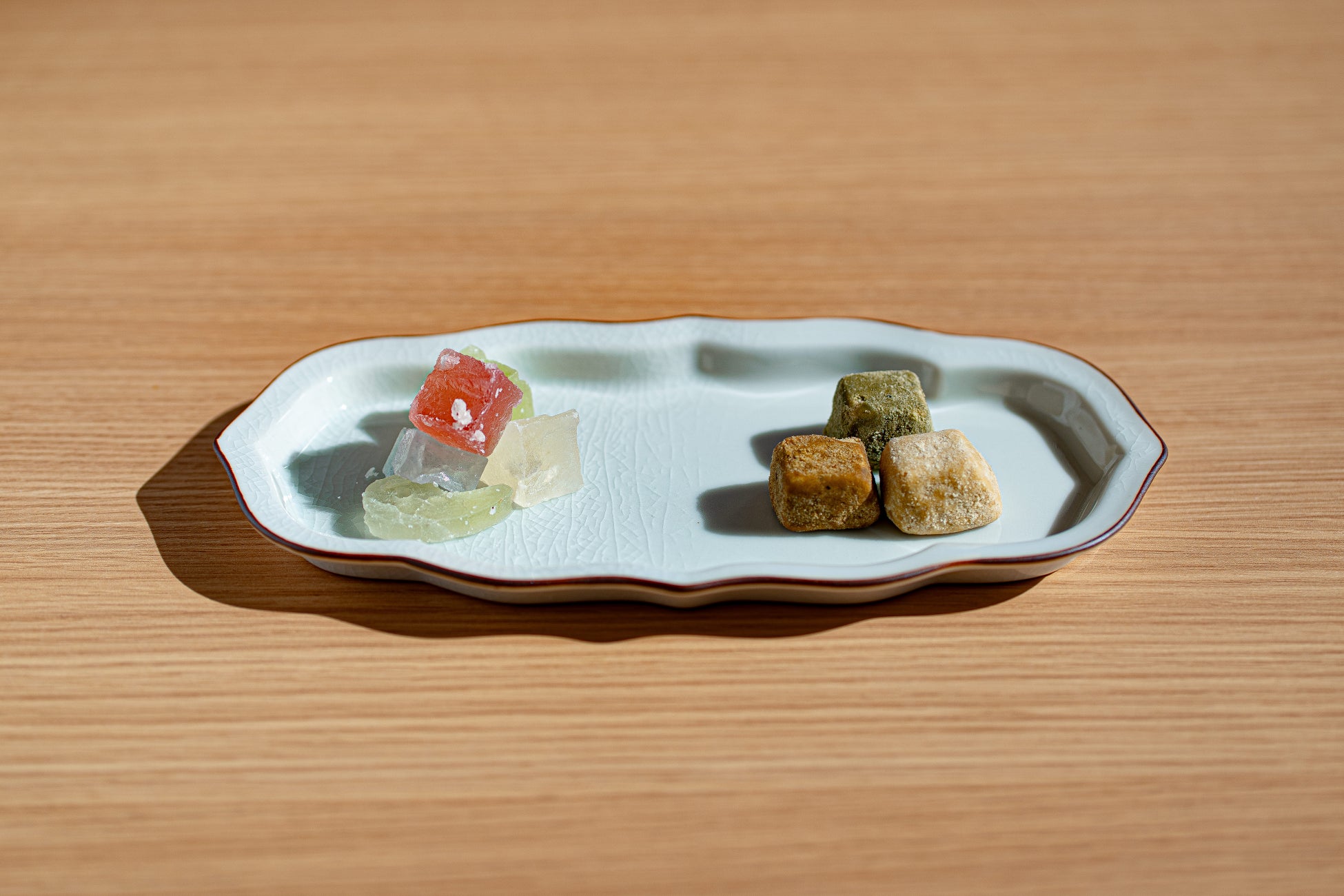 【写真右】菓子工房よどがわの茶玉(和三盆糖、加賀棒茶、抹茶)