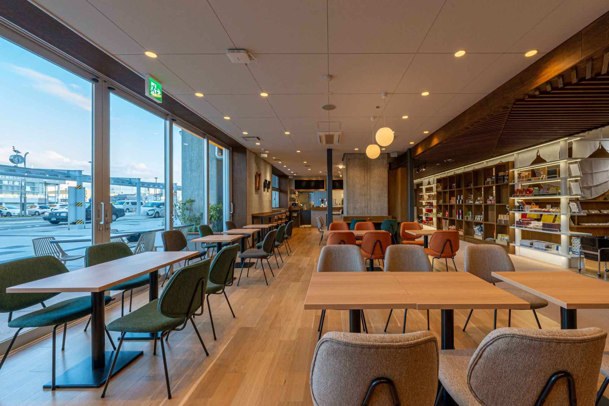 さらに、地元の銘菓とコラボレーションした同店オリジナルのメニューが提供されるほか、小松市のシンボルである「松」をモチーフとしたオブジェやTシャツ、滝ヶ原石のコースターなどのお土産品も用意しており、居心地の良いカフェとして楽しめるだけでなく、観光やビジネスで小松を訪れる方々などに向けて地元の魅力を再発見できるスペースとなっております。