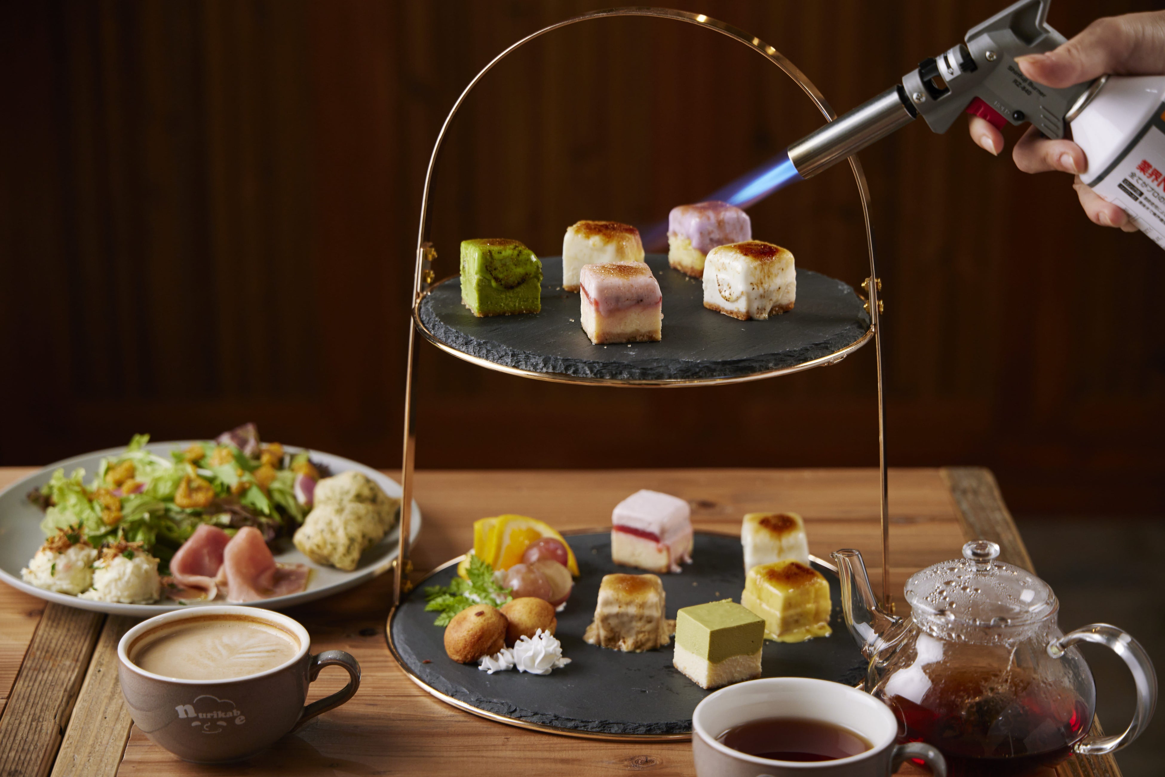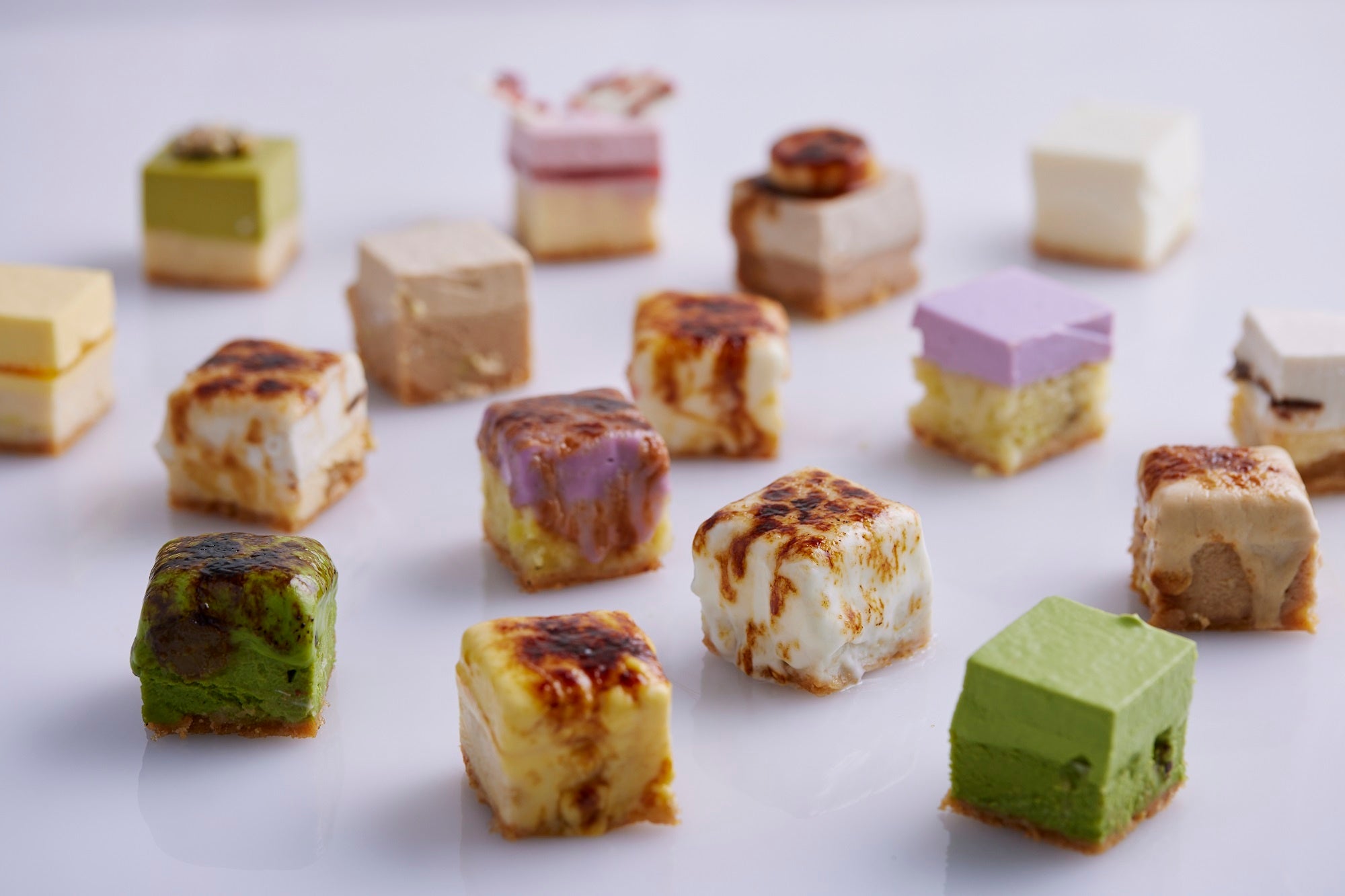 10種類のカラフルな炙るチーズケーキでお出迎え!アフタヌーンティーからテイクアウトもご用意♪