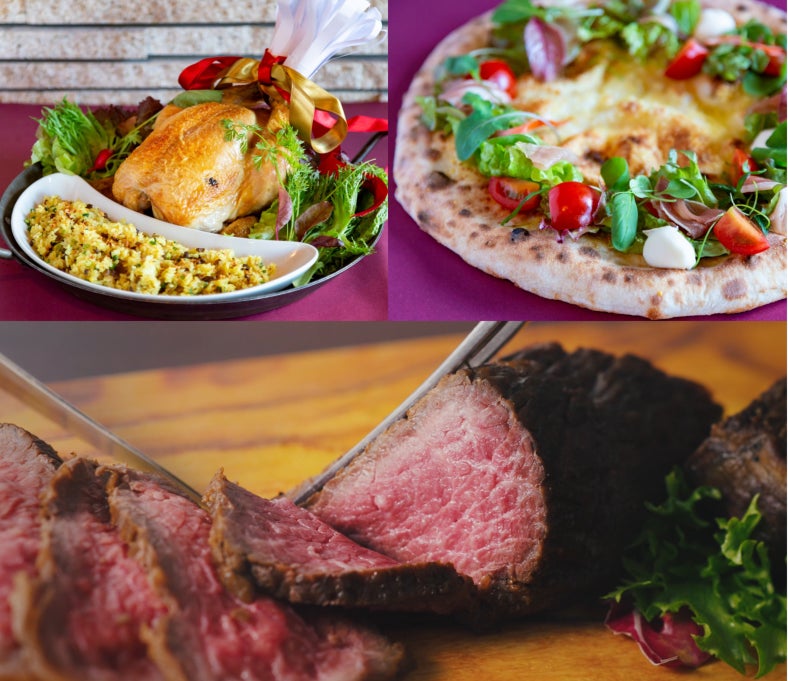 宮崎牛のローストビーフや宮崎郷土料理はもちろん、ローストチキンなどのクリスマスならではのメニューが並びます。さらに、日本を代表するパティシエ Toshi Yoroizuka監修デザートを、ライブ感満載のアクションでご提供します。